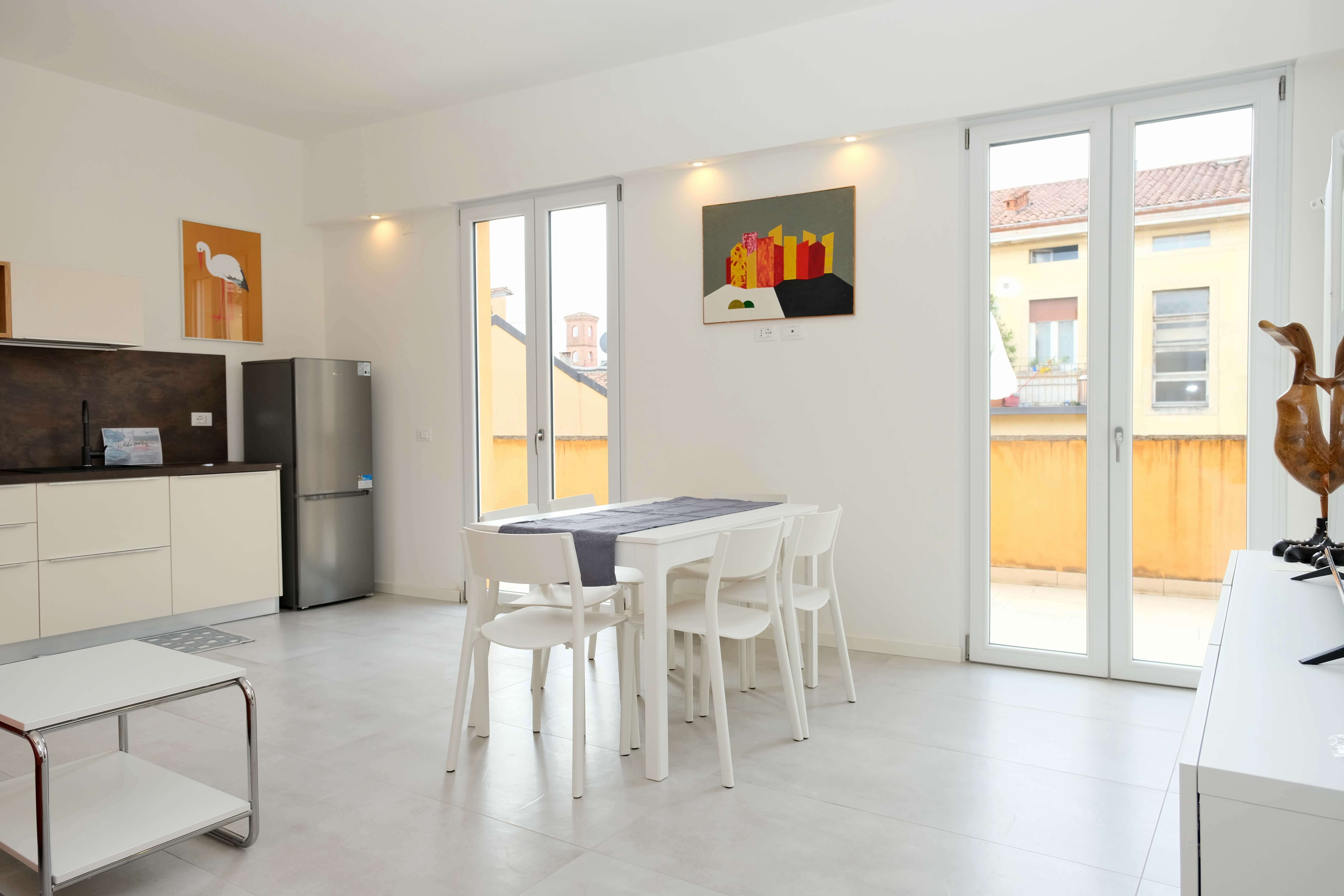 Nelle vicinanze di Terrazza Verona troverete Via Mazzini, Piazza delle Erbe e il Museo di Castelvecchio. La struttura dista 12 km dall'Aeroporto più vicino, quello di Verona, e fornisce eventualemente un servizio di navetta aeroportuale a pagamento.